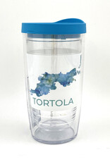 16 oz double layer insulated reusable plastic tervis tumbler with a illustrated picture of the island of Tortola which is located in the British Virgin islands. This tervis tumber is durable (they can take a tumble without shattering), BPA free, dishwasher safe and comes with secure plastic lid.